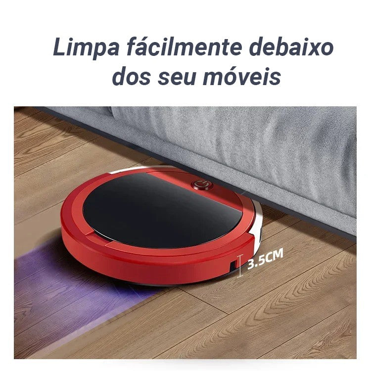 Aspirador robot Inteligente ultrafino com controlo remoto e 4 modos de limpeza. Com apenas 3,5 cm de altura, limpa facilmente debaixo de móveis. Silencioso e eficiente, ideal para várias superfícies. Autonomia prolongada e de fácil manutenção. Controlo inteligente para uma limpeza autónoma e sem esforço.