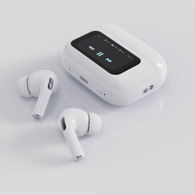 Estes auriculares Bluetooth sem fios oferecem uma experiência sonora de alta qualidade com som stereo panorâmico 360º e tecnologia de redução de ruído inteligente para chamadas e música mais nítida. Com um ecrã interativo na caixa de carregamento, permite visualizar informações essenciais como nível de bateria e controlo de reprodução de música.